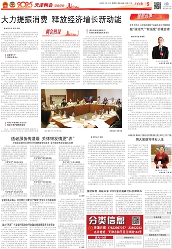“构建‘大消费’格局”“丰富多元化消费场景,完善消费环境,促进线上线下消费业态融合”“促进文旅、健康、养老、银发、托育、家政等服务消费”……政府工作报告谋划今年“提振消费”相关工作,目标明确、内容务实、催人奋进。代表委员们纷纷从多个角度为提振消费“添柴”献策,让“烟火气”在津城“燃”得更旺。