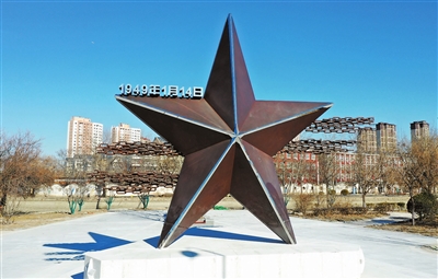日前,一座光荣之星雕塑在1949年解放天津民权门突破口的战斗起始点建成。该雕塑位于绿宝石公园内。 本报记者 周伟 摄