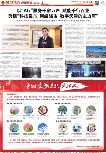 三是拓展应用场景,助力城市更新。天津移动作为唯一运营商参与《天津市城市大脑地方标准》编制工作,承建天津市自然灾害应急能力提升工程、中新生态城智慧城市、“津民家”智慧社区服务平台、国资云、公安警务通、医保12393热线等系列项目,积极助力提升政务服务和城市治理的数智化水平。与天津光合谷联合打造“5G+智慧旅游项目”,入选国家文旅部、工信部首批“5G+智慧旅游”试点,携手河北区政府打造“意风秘境”数字文旅项目,赋能数字经济与文旅产业融合创新,激发文化创新力。今年政府工作报告对提升城市面貌和综治能力提出更高目标要求,天津移动将加快落地中国移动“AI+”城市超脑平台,推动AI在公共安全、应急管理等场景的延伸应用,助力大城细管、大城智管、大城众管,全力服务韧性安全城市建设。