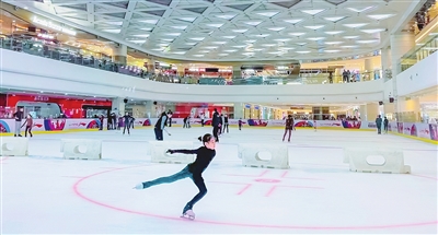 周末假期,我市各大商场综合体成为市民体验冰雪运动的热门场所。
