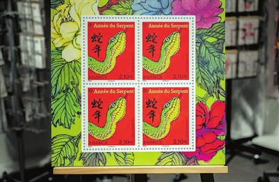 据新华社北京1月19日电 18日,法国发行中国农历蛇年生肖纪念邮票。乙巳蛇年,是“春节——中国人庆祝传统新年的社会实践”被列入联合国教科文组织人类非物质文化遗产代表作名录后的第一个中国农历新年,也是法国发行中国生肖邮票的第21年。