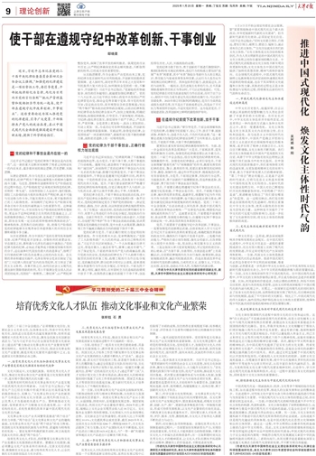 党的二十届三中全会提出:“必须增强文化自信,发展社会主义先进文化,弘扬革命文化,传承中华优秀传统文化,加快适应信息技术迅猛发展新形势,培育形成规模宏大的优秀文化人才队伍,激发全民族文化创新创造活力。”这与习近平总书记在全国宣传思想文化座谈会上提出的“着力推动文化事业和文化产业繁荣发展”要求相呼应。培育优秀文化人才队伍,推动文化事业和文化产业繁荣,既是实现文化繁荣兴盛的题中之义,也是建设文化强国的必由之路。