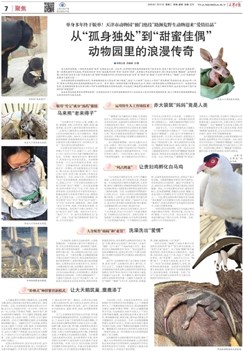 在天津市动物园,一场别开生面的“脱单”大剧成功上演。2024年,35种哺乳纲和鸟纲动物告别了孤单生活,迎来了属于它们自己的“爱情故事”。每一段都充满传奇与浪漫:年迈的马来熊“壮壮”通过服用含有“男宝”成分的“汤药”,在垂暮之年成功迎来爱子;娇小的赤大袋鼠“鹌鹑蛋”,在饲养员精心制作的“仿生育儿袋”中感受着人类“妈妈”的温暖与呵护;内向的大食蚁兽“亚男”在“相亲”后“邂逅”了它的“梦中情人”“楠楠”,几次“洗澡约会”后擦出了爱情火花……