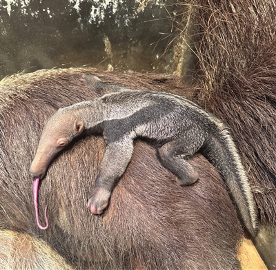 经双方协商,“楠楠”于2023年夏天从济南野生动物世界“落户”到天津市动物园,与“亚男”合笼“成亲”。为了创造“楠楠”最为偏爱的氛围,饲养员特意让它俩经常在一起洗澡,你侬我侬,洗出了干净,洗出了“爱情”,还经常在一起“秀恩爱”。2024年8月6日,“楠楠”诞下一只雄性大食蚁兽,起名为“秋实”。“秋实”皮毛浓密,眼睛较大,贪吃,喜欢和妈妈调皮捣蛋。游客到市动物园参观大食蚁兽时,均被“秋实”的呆萌形象吸引,纷纷拿出相机、手机拍摄。目前,“秋实”已成为济南野生动物世界与天津市动物园共同呵护的宝贝。