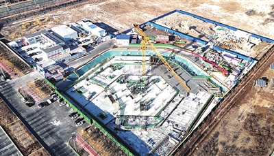 虽然距离春节越来越近,在中新天津生态城绿创中心项目施工工地,车辆穿梭、机器轰鸣,依然是热火朝天的大干景象。