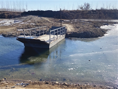近日,记者来到小木桥所在地,其位于宝坻区新安镇孙家口村东、于家口村村域内。这段蓟运河不宽,大约有二三十米,小木桥从河中央被一分为二,天津部分已经完全被拆除,数根桥梁打桩木被摆放在河岸边。河北省界内的半截桥还在,但入口处已经被用泥土封堵。从剩下的一半断桥可以看出,小木桥比较简陋,两侧没有正规的桥栏,只用几根木头作为“遮挡物”,但宽度可以容纳农用车通行。河岸边停放着两辆摆渡船,村民介绍,这是小木桥被拆除后,两地村民临时应急使用的,主要用来运送孩子们上下学回家。