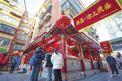 四九寒冬,在西北角特色街区,红桥区铃铛阁街道为西马路沿线、西北角“金角”公园及欢庆西胡同的景观树木与灯杆装扮上柔软的多巴胺色“外衣”,并安装夜景灯光,不仅极大提升了城市环境的美观度,更成为吸引游客的一大亮点。