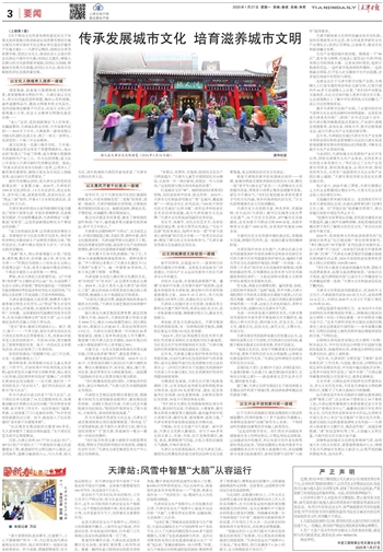 天津深入挖掘历史文化资源,加强各类文物和文化遗产保护利用,传承弘扬红色文化,进一步彰显城市底蕴,增强城市吸引力,激发文化创新力。