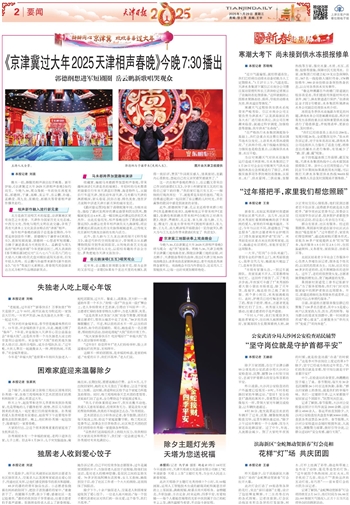 今晚7:30,《京津冀过大年2025天津相声春晚》将与观众一起“笑”度新春。明晚7:30,天津卫视携手京津冀三地戏曲名家,围绕京津冀三地的京剧、河北梆子、天津鼓曲等特色曲种,推出《天津卫视2025戏曲晚会》,诸多戏曲名家联袂演出,青年戏曲名角演绎各家所长。戏曲晚会不仅内外景结合,还采用人工智能技术,让每一出好戏更加精彩绝伦。