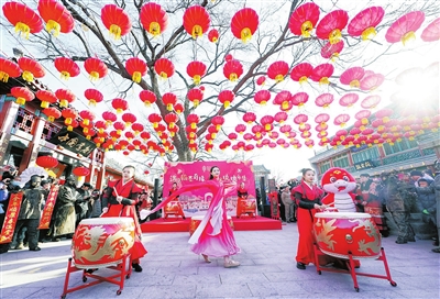 1月29日,在北京市琉璃厂东街中国书店前,伴随着铿锵的锣鼓点和威风八面的白纸坊太狮表演,2025年西城区“北海大厂”春节活动暨厂甸庙会正式拉开序幕。
