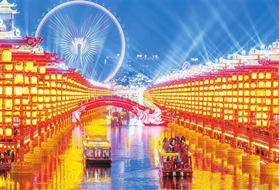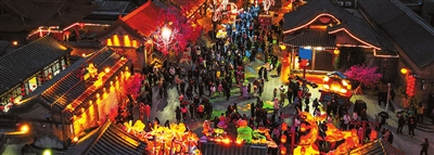 1月29日,唐山市河头老街景区灯光璀璨游人如织,年味儿十足。景区内,民俗表演轮番上阵,水上市集美食荟萃,一派红红火火热闹景象。