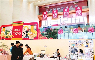 在这里,向往文化生活的男女老幼各享其乐:书画爱好者王先生带着家人在展厅赏画,展柜里描绘节日雅趣的《岁朝图》正映衬着此刻一家人的其乐融融;馆内举办的新春市集上,线装书、绒花、面人、烙画等颇具传统意蕴,引得观众流连忘返;来自河北省的观众李佳伟直言在文创商店里挑花了眼,他想把天津特色文化都带回去和好友们分享。