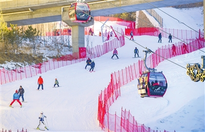 1月29日,滑雪爱好者在张家口市崇礼区翠云山银河滑雪场滑雪。春节假期,张家口市崇礼区各大滑雪场,精心准备了丰富多彩的冰雪活动,吸引八方游客前来享受冰雪乐趣,欢度新春佳节。 河北日报记者 耿辉 摄
