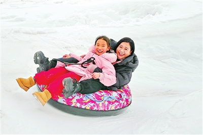 1月30日,游客在天津欢乐谷享受冰雪乐趣。 天津日报记者 孙立伟 摄