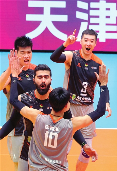 本赛季,天津队除了续约伊朗主攻手埃斯凡迪亚尔和古巴接应二传手罗德里格斯之外,还全新引入了古巴副攻手卡洛斯,更是从上海队招入了副攻老将陈龙海。3名外援与一名内援不仅补强了天津队的阵容实力,更有效提升了全队的比赛经验和关键战的竞争力。常规赛首战虽然在主场负于河北队无缘开门红,但天津队经过及时调整,随后在客场3局横扫福建队、主场3:1击败山东队、主场3:2险胜江苏队,成功拿到3连胜。在常规赛结束后,天津队以7胜7负积21分位居A级联赛战绩榜第3位,创造了球队在全国联赛第一阶段的队史最好成绩。季后赛第一阶段进入D组,天津队又以4胜2负积12分获得小组头名,队史上首次跻身全国联赛4强。