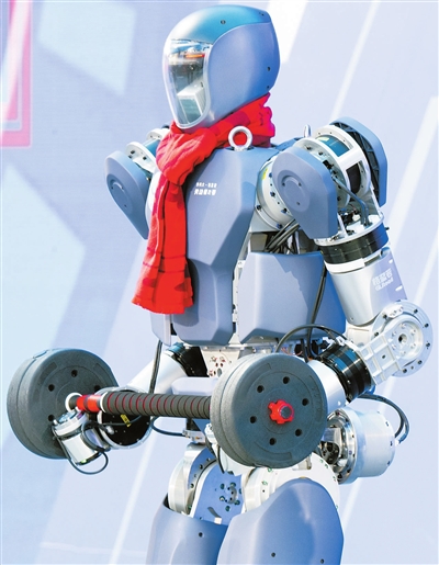 “我叫‘劳动者’1号”“新春大吉,万事如意”……面对提问,1.8米的大块头“劳动者”1号从容交流。旁边的“劳动者”2号在无辅助站立时双臂举起10公斤重杠铃,“劳动者”3号则双手端着“新春快乐”的卡牌在平地上直膝稳定行走、横移、倒退。