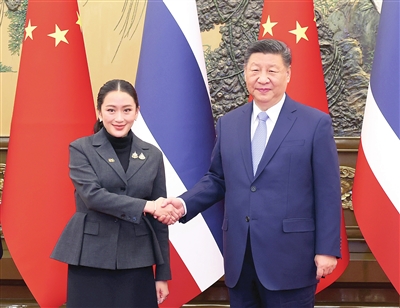 新华社北京2月6日电(记者 董雪 邵艺博)2月6日上午,国家主席习近平在北京人民大会堂会见来华进行正式访问的泰国总理佩通坦。