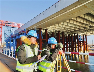 连日来,中铁十八局滨海新区西中环快速路跨海河桥工程项目部联合监理单位等对现场安全设施、设备进行检查,确保节后复工复产平稳有序推进。本报记者 张磊 通讯员 徐辉 摄