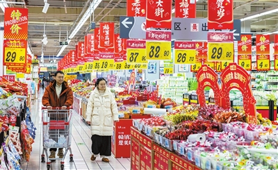 图为2月9日,消费者在贵州省安顺市西秀区一家超市选购商品。 新华社发