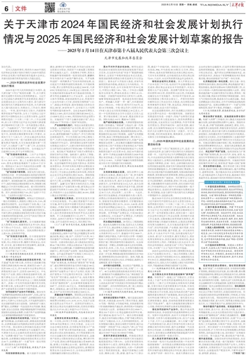 ——2025年1月14日在天津市第十八届人民代表大会第三次会议上 2025年02月10日  天津市发展和改革委员会