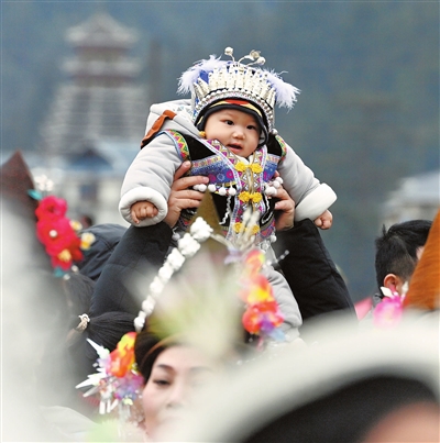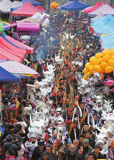 2月10日,广西柳州市融水苗族自治县安太乡迎来一年一度的“十三坡会”。当地各族群众欢聚一堂,开展吹芦笙、跳踩堂舞等活动。