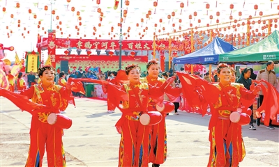 昨日,“我们的中国梦文化进万家”宁河区2025年“赶大集逛庙会庆元宵”京津冀古音乐吹奏展演活动在芦台大集举办。在此次活动中,还有腰鼓、抖空竹等精彩的民俗表演。