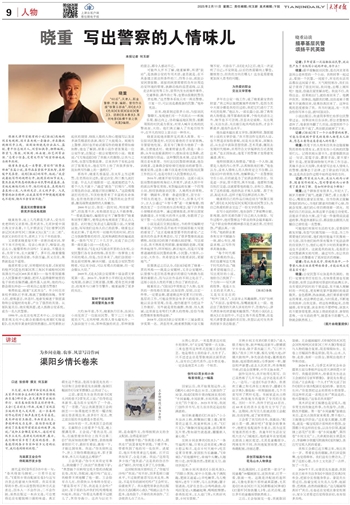 “每个时代都有它承载的作品,我们也要写出无愧于时代的作品。”晓重希望超越自己,写出更好的小说,他给自己找到了一个方向——写天津的故事。他是土生土长的老天津人,又是实实在在的“相声门里人”,言谈举止风趣幽默,不抖“包袱儿”不说话,也爱唱戏,张嘴就能来上一段。他活出了典型的天津人该有的样子,在他内心,讲天津故事的欲望越来越强烈。“我的小说《沽上烟火》正在创作中,不过主角不再是警察,而是咱天津普普通通的老百姓,我想以此对生我养我的家乡表达敬意。”