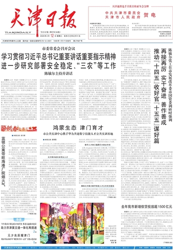 本报讯(记者 于春沣 刘国栋)2月11日,市委书记陈敏尔,市委副书记、市长张工前往市发展改革委、市国资委调研。陈敏尔强调,要全面贯彻党的二十大和二十届二中、三中全会精神,按照中央经济工作会议部署,紧紧抓住学习贯彻习近平总书记视察天津重要讲话精神这个工作主线,再接再厉、实干奋进、善作善成,推动一季度开好局、“十四五”收好官、“十五五”谋好篇。