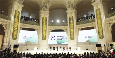 图为2月11日在法国巴黎大皇宫拍摄的人工智能行动峰会现场。 新华社发