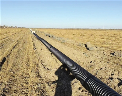宁河区高标准农田改造现场铺设输水管道,为满足节水灌溉需求提供保障(资料片)。 本文照片由受访单位提供