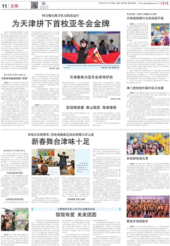 “元宵佳节喜气浓浓,馆馆联动情意很重……”伴随着盲人表演者蔡成的原创快板表演,助残游园会拉开帷幕。在“书香天津 玩转书法”区域,无指书法老师王恩锋以掌执笔,将写有“拼搏”“快乐”“奋斗”“坚持”等祝福语的书签和“福”字书法作品赠予孩子们;在“趣味自然 彩蛇迎春”区域,残疾手工艺爱好者乐乐与参与者一起体验彩蛇、恐龙等主题动物面人制作,让孩子们在动手中感受传统文化的魅力;“变装年画 非遗传承”区域,年画创作者房国亮展示了杨柳青年画的制作流程,邀请游客一起体验为年画上色;“寻宝天博 扭转月神花”区域,残疾手工艺爱好者张浩与参与者共同完成“二月杏花”扭扭棒制作,将馆藏文物元素融入现代手工艺中。活动中,残疾人艺术家们纷纷亮出绝活儿,与青少年携手共创文创作品。孩子们在体验传统文化的同时,也与残障人士进行了深入交流与互动。