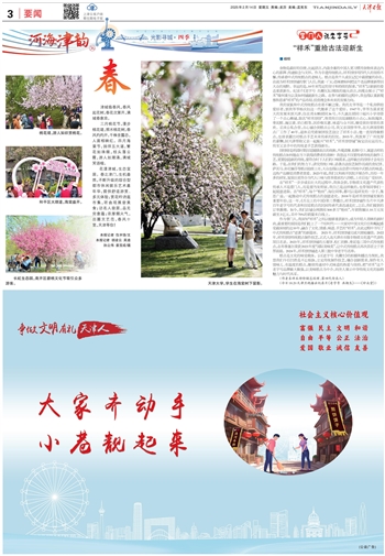 花漾津城,生态宜居。春之津门,生机盎然,不断升级的综合型都市休闲娱乐艺术嘉年华,提供舒适游赏、多元体验:赏花吟诗逛市集,听曲观展尝美食;访名人故居,品无穷意蕴;浓厚烟火气,出圈文艺范,春风十里,天津等你!