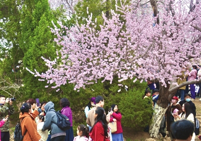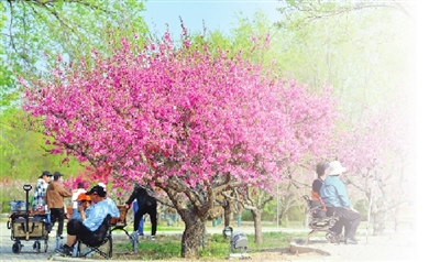 长虹生态园,南开区碧桃文化节吸引众多游客。