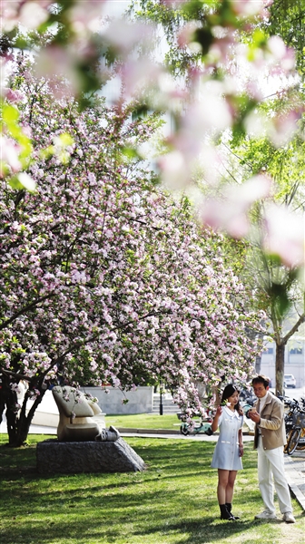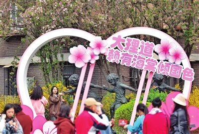 三月桃花节,漫步桃花堤,照水桃花树,春风灼灼开,千株含露态,人面相映红。四月海棠节,徜徉五大道,繁花如珠缀,枝头落云霞,游人如潮涌,满城笑语喧。