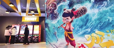 这是在北京市朝阳区一家影院内摆放的《哪吒之魔童闹海》海报。