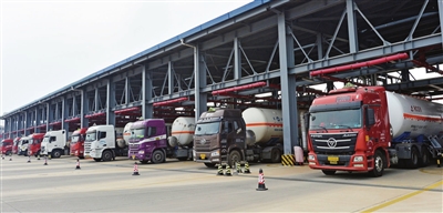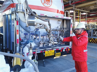 槽车正在液态加注区充装液化天然气。