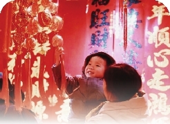 大年初一,人们早早起床,大人孩子从头到脚焕然一新。天津河海漕运繁盛,自古崇拜妈祖。传说妈祖“海上翻飞著朱衣”,因此天津女性过年穿红衣、红鞋,表征对妈祖尊崇。初一凌晨,众神下界,故要吃素馅儿饺子或全天吃素,表达虔诚之心。为求人财两旺,不少人到大悲院或鼓楼烧求顺香。另外,老天津人对红红的、喜庆的绒绢花情有独钟。正如清末一首诗中所言:“称体衣裁一色红,满头花插颤绫绒”,以前临近春节,天津街头巷尾随处可见卖绒绢花的小贩,店铺以老字号玉丰泰名气最大。无论少女老妪,都喜欢过年时戴上几朵红绒花,求吉利图喜庆。