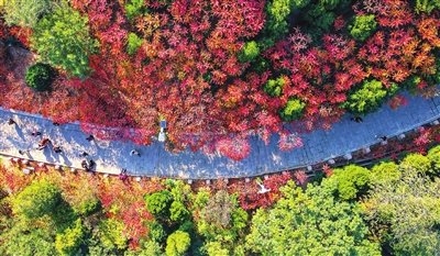 南翠屏公园的火炬树、红叶女贞、红叶李等红叶正浓。