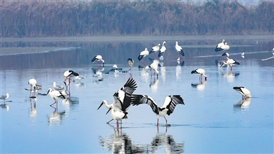 滨海新区北塘宁车沽迎来万千候鸟在此停歇补给。