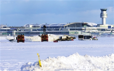 据加拿大媒体17日报道,达美航空公司一架客机当天在加拿大多伦多皮尔逊国际机场降落时发生事故并着火,造成8人受伤。2月17日,在加拿大多伦多皮尔逊国际机场,一架客机倒翻在跑道上。 新华社发