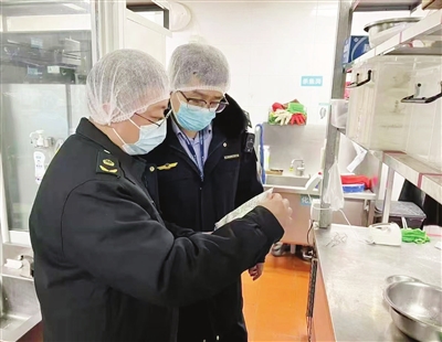 市市场监管综合行政执法总队加强食品安全监管,围绕食品生产经营单位进货索证索票、人员健康管理等方面开展检查。