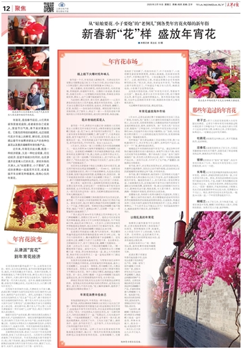 近年来,年宵花日益火爆,既是一种经济现象,又是一种社会现象,在拉动经济、促进市场细分的同时,也在渗透并改变着人们的生活。讲究年俗的天津人,从“姑娘要花、小子要炮”,变成扶老携幼一起逛花市买花,或者直接开车去鲜花种植基地,选购心仪的年宵花。