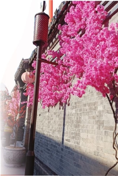 杨柳青古镇仿真花墙。