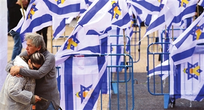 图为2月20日,在以色列特拉维夫一处广场,人们通过屏幕观看被扣押人员遗体移交过程。