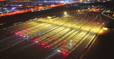 图为2025年1月14日,动车组列车在铁路天津动车客车段动车运用所停车场整装待发(无人机照片)。 新华社发