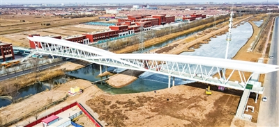 近日,作为区域城乡融合关键的配套设施,位于静海区杨成庄乡东寨村南侧的静翔天桥工程项目主体完工,该项目紧密连接着东寨村产业融合发展示范中心与团泊健康城,天桥东西总长约288.2米,两侧各设置坡道一座,步行梯道一座以及自动扶梯一座。建成投用后将搭建起乡村产业融合发展的直接慢行交通通道,在为居民出行和产业交流互动提供极大便利的同时,也成为一道新的风景线。