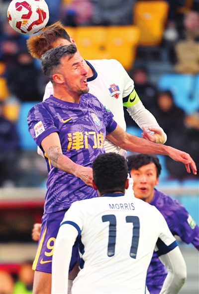 本报讯(记者 顾颖 摄影 孙震)昨天下午,天津津门虎队在泰达足球场,进行了新赛季中超联赛首轮比赛,最终与梅州客家队2:2战平,津门虎首轮主场不胜魔咒依然未除。球队新引进的西班牙籍前锋基莱斯一人独中两元,不过他也射失了点球。赛后,主教练于根伟表示:“球迷们在那么冷的天气下到现场支持我们,非常遗憾没能拿下首胜,辜负了大家的期望。”