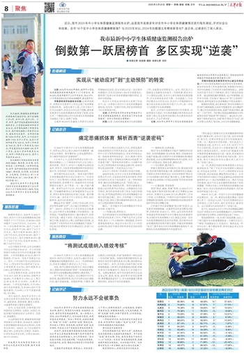 2024年天津市中小学生体质健康监测报告公布,榜单上,西青区位列榜首,滨海新区、北辰区、南开区等区域成绩优秀。这一结果令人惊叹:2023年的榜单上,它们还排名靠后,西青区更是全市垫底。仅仅一年时间,这些区域便从“倒数”变“正数”,这样的“逆袭”堪称完美。然而深入了解后,你会发现,这样的“逆袭”也并非偶然,而是自上而下系统性变革结出的果实。
