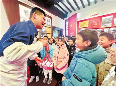 近日,和平区岳阳道小学走进润园开展新学期第一堂思政课,与以往不同,这节课的形式让同学们兴奋不已。岳阳道小学与润园提前开展了联合教研活动,为不同年级学生设计了不同内容的研学单。润园的“老师”结合场馆展陈特点,以多幕情景剧形式,为同学们带来沉浸式的参观体验。同学们置身其中,在历史剧情的发展演义中,将爱国主义的种子根植于心。