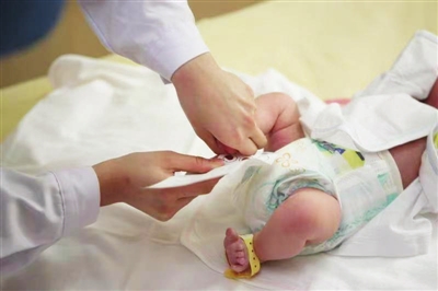 医护人员为新生儿采集足血筛查苯丙酮尿症。